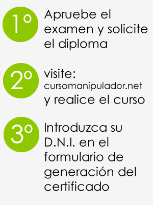 Importante: Una vez que realice el examen de manipulador de alimentos, introduzca su D.N.I en el formulario para que nuestro sistema le reconozca y le deje obtener del certificado de manera gratuíta.